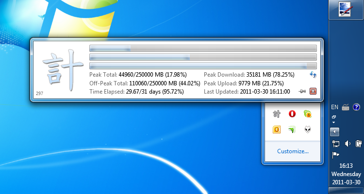 Keiki lets you monitor your internet data usage from the Windows notification area ('system tray'). Plugins for OptusNet Broadband are included.